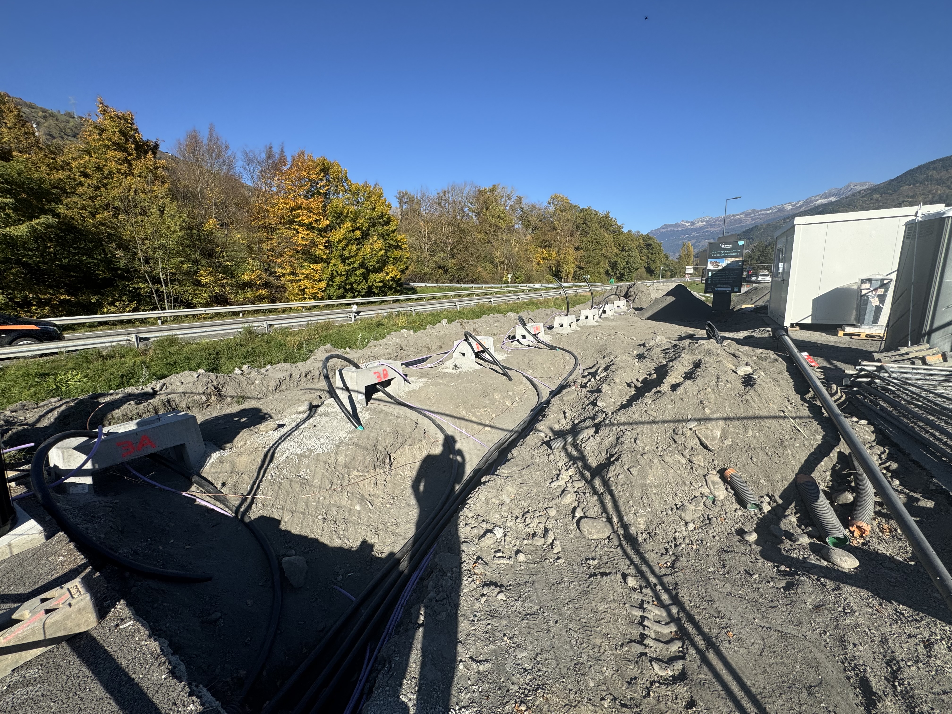 Construction d’une station Tesla à Aime-la-Plagne (E. Leclerc).