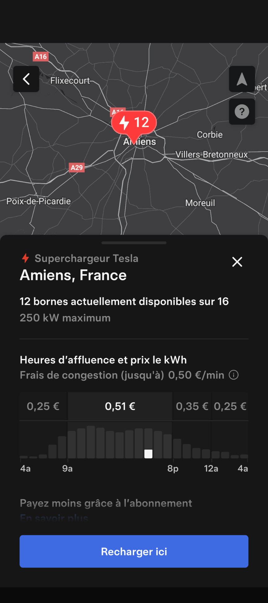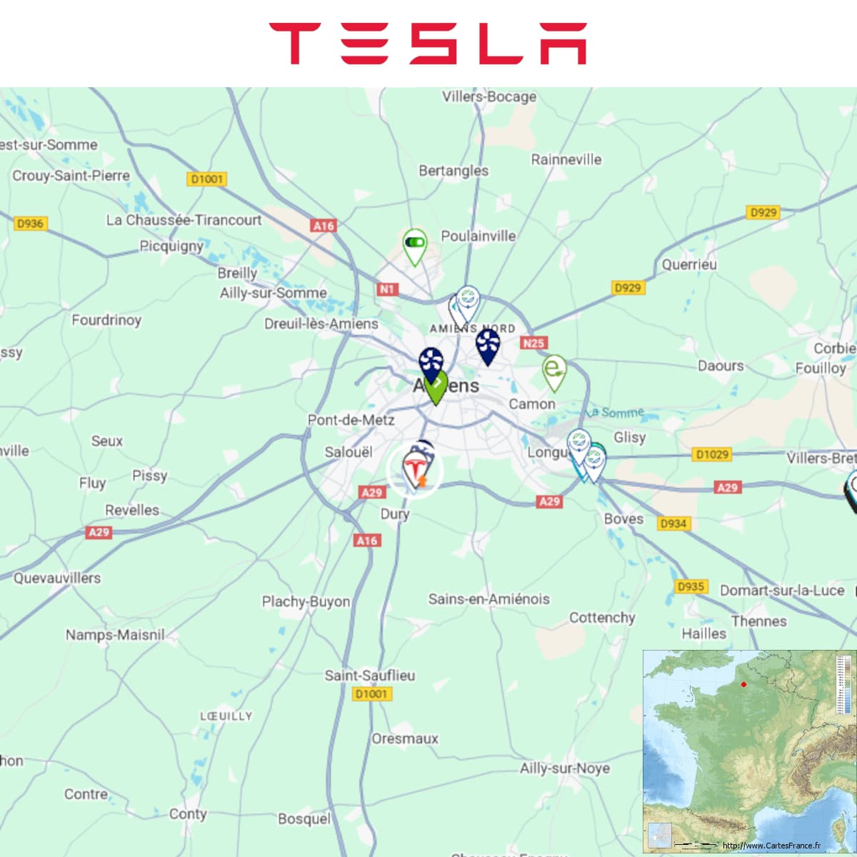 Agrandissement terminé d’une station Tesla à Dury (Auchan).