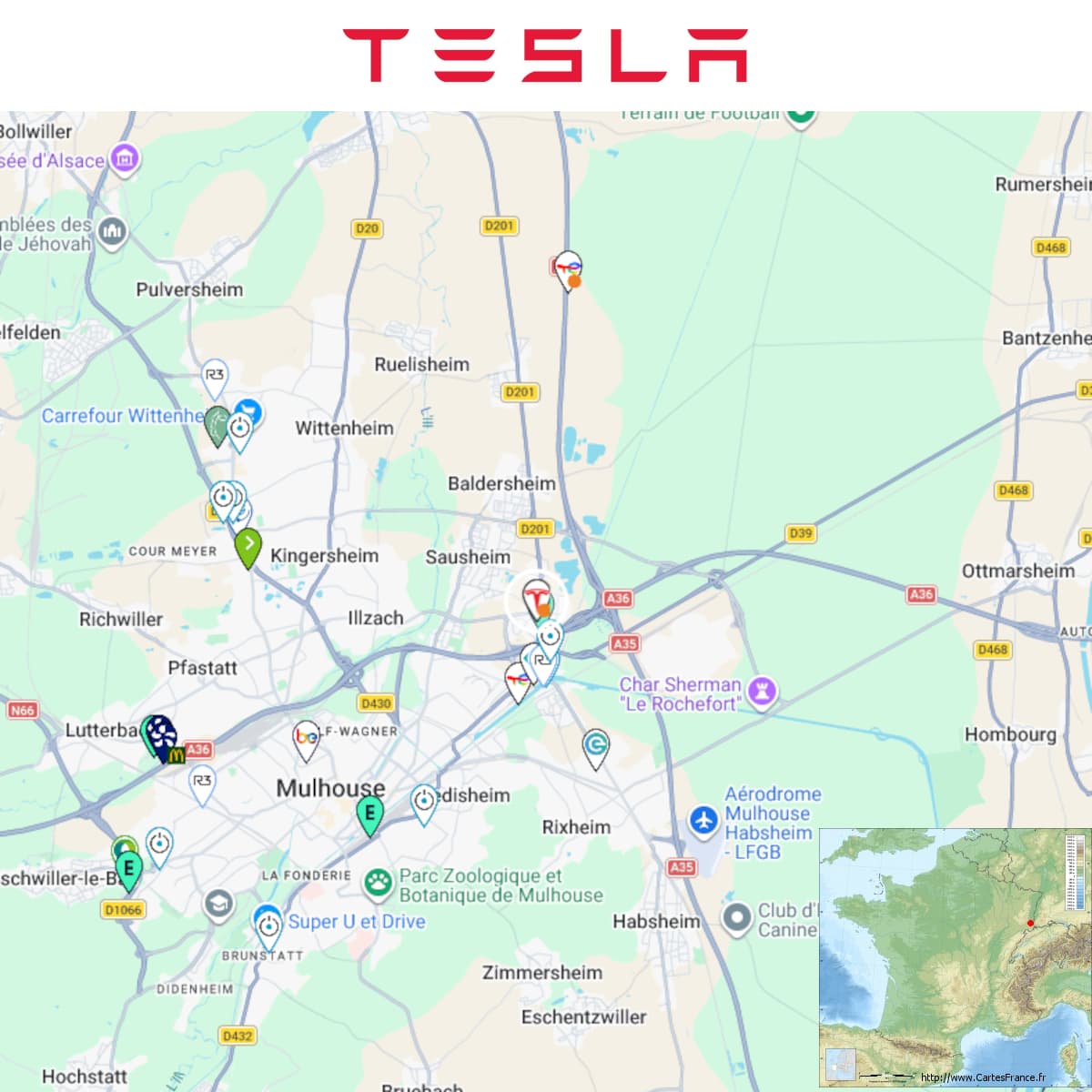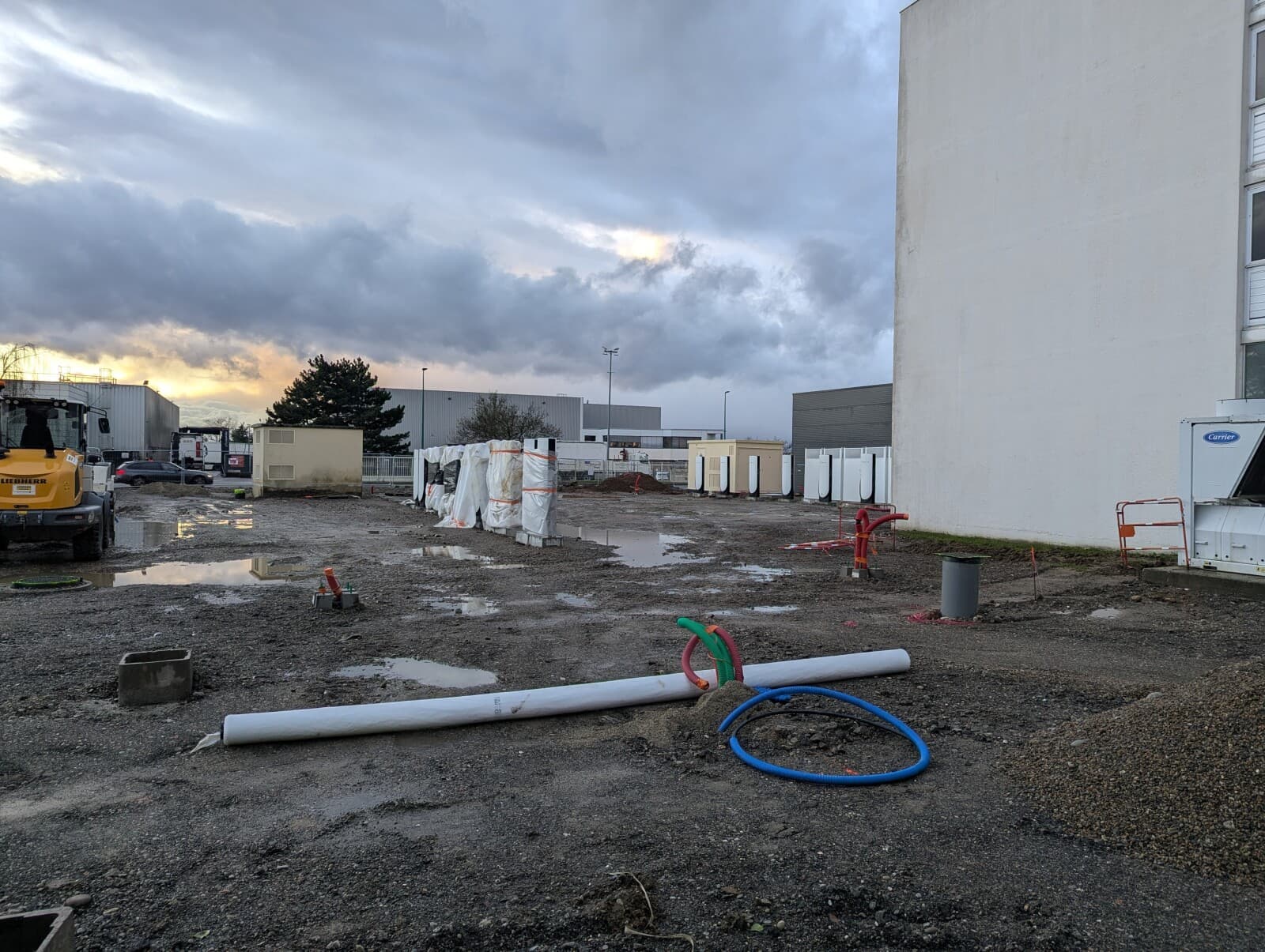 Construction d’une station Tesla à Mulhouse (Kyriad).