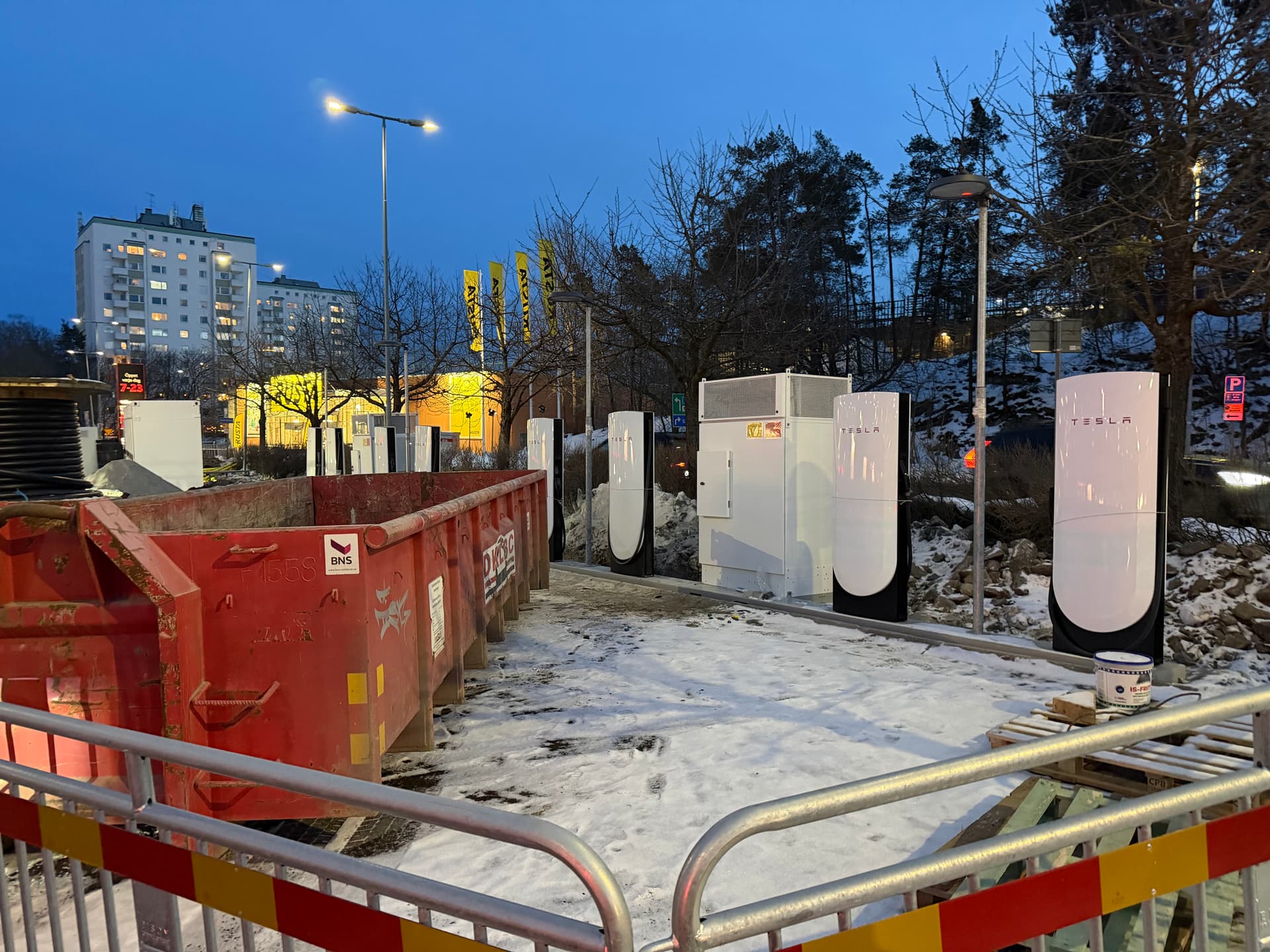 Still under expansion. All old stalls are now available for use though. I counted 8 new stalls being installed, and I believe the big thing is a battery bank. I’ve heard of those being installed in other places in Sweden as they can’t get new or updated grid connections due to the ongoing union conflict.