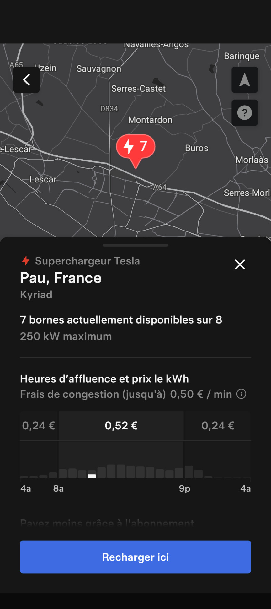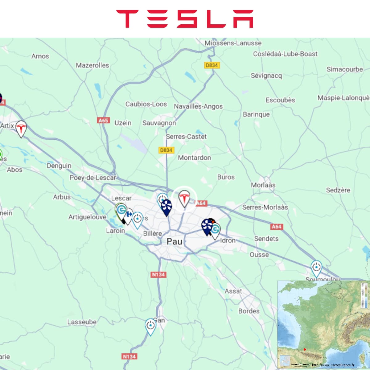 Travaux d’une station Tesla à Pau (Kyriad).