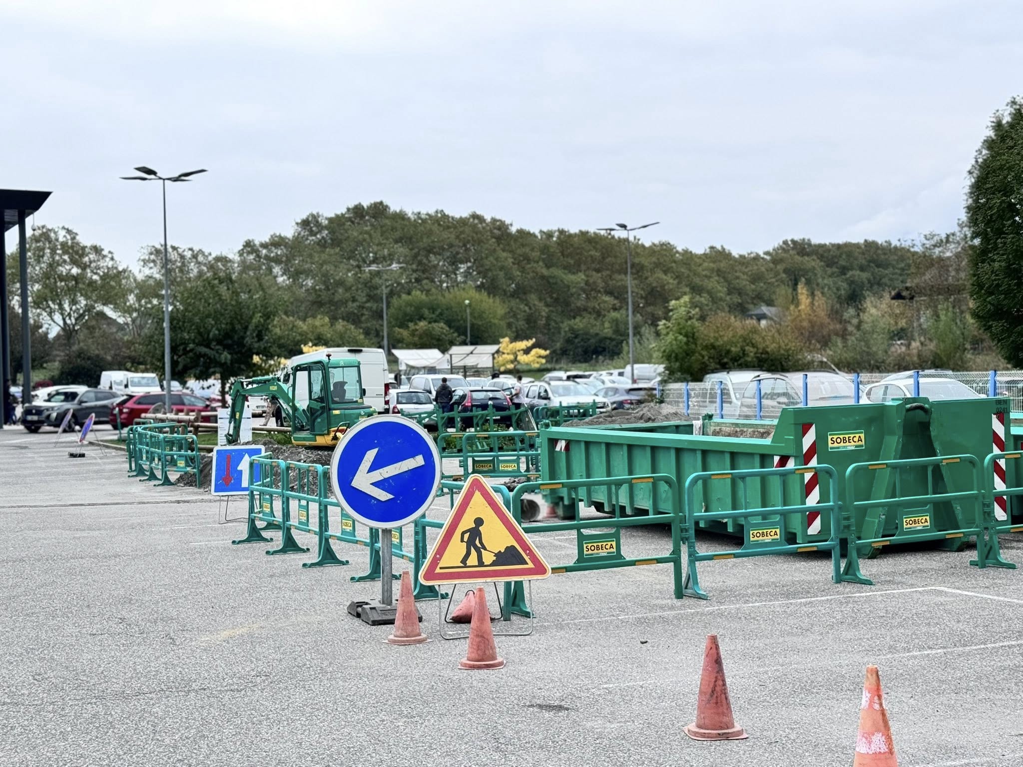 Construction d’une station Tesla à Porte-de-Savoie (Super U).