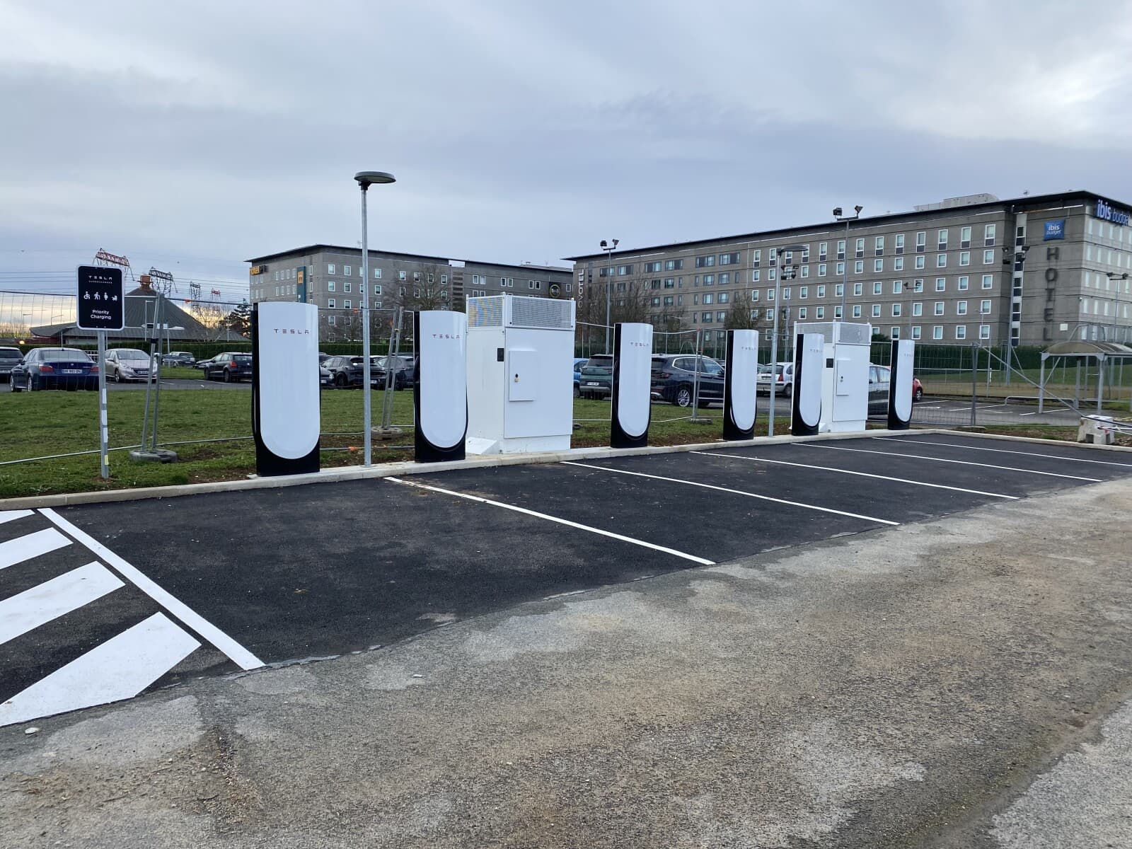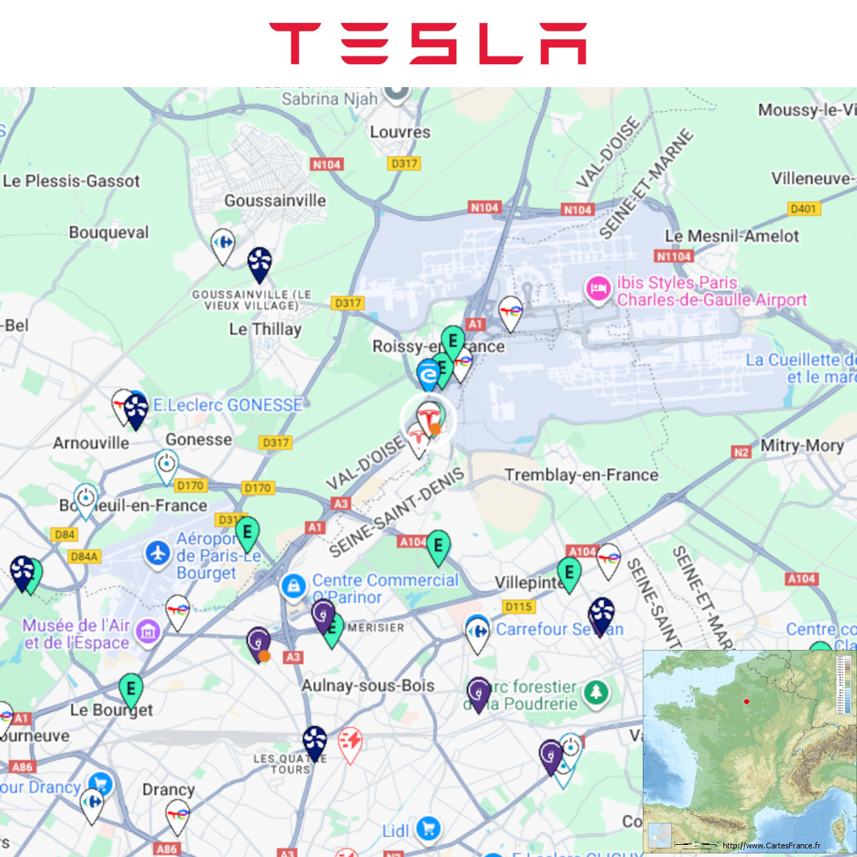 Construction d’une station Tesla à Roissy-en-France (Restaurant Van der Valk).